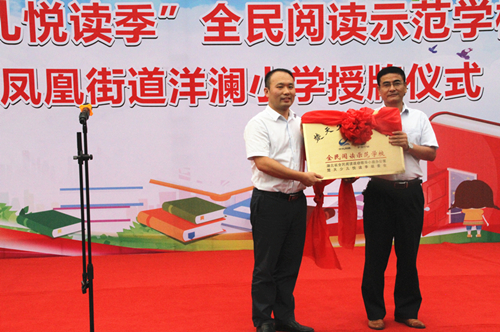 余建兵說,洋瀾小學獲得“楚天少兒悅讀季”全民閱讀示范學校的授牌,既是一份榮譽,更是一份責任,希望洋瀾小學未來在校園閱讀、教師閱讀和學生閱讀方面當好全街乃至全市273所中小學校的典范。