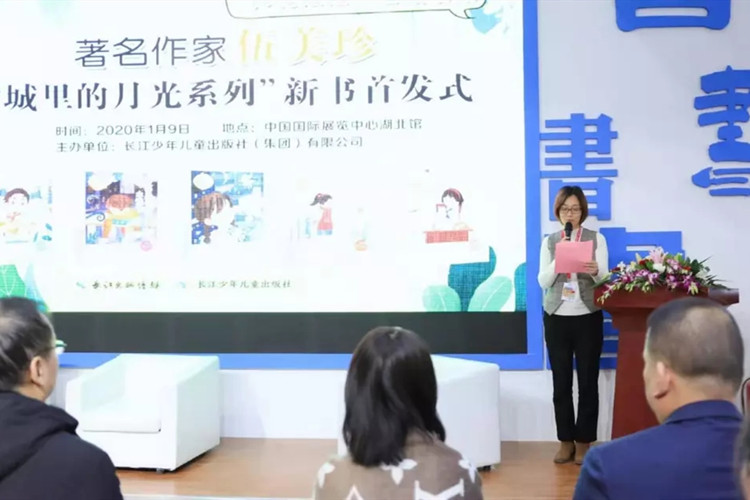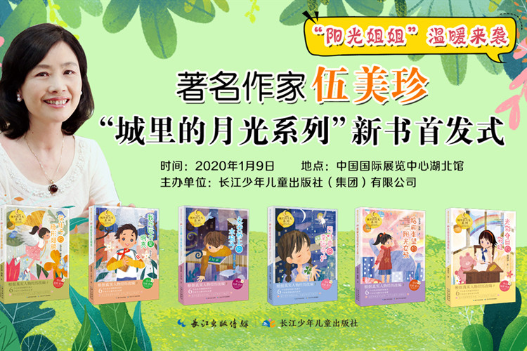 2020年1月9日上午,由長江少年兒童出版社(集團)有限公司主辦的“陽光姐姐”伍美珍“城里的月光系列”新書首發式在中國國際展覽中心舉行。