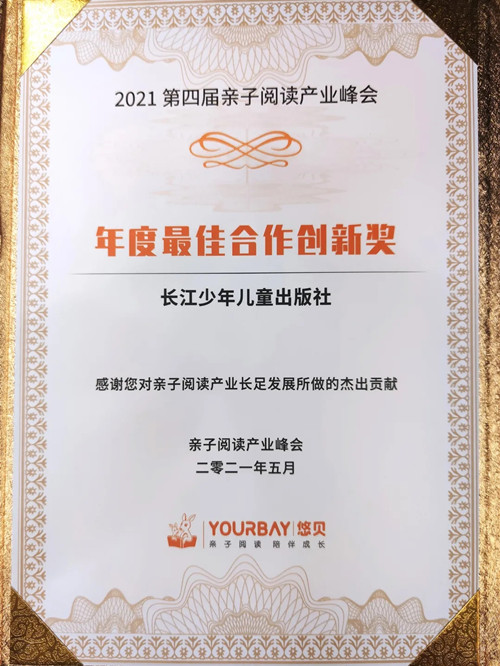 5月24日,以“激活?協(xié)同?共生”為主題的第四屆親子閱讀產(chǎn)業(yè)峰會(huì)“花開五城”第四站于廣州長(zhǎng)隆酒店隆重召開。長(zhǎng)江少年兒童出版社被評(píng)選為“年度最佳合作創(chuàng)新獎(jiǎng)”。