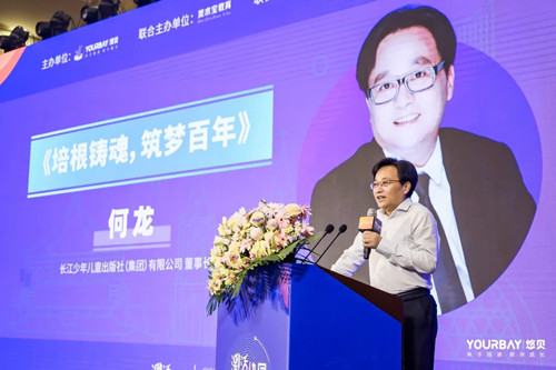 長(zhǎng)江少年兒童出版社(集團(tuán))有限公司何龍董事長(zhǎng)發(fā)表致辭《培根鑄魂,筑夢(mèng)百年》。