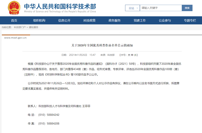 2020年度全國(guó)優(yōu)秀科普作品公示名單