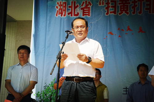 (湖北省新聞出版廣電局反非法和違禁出版物處處長狄曉天致辭)