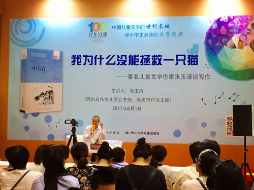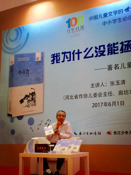 2017年6月1日下午1點30分,在第27屆全國圖書交易博覽會唐山會場,冰心兒童圖書獎得主、廊坊市作家協會主席、河北省作協兒委會主任、著名作家張玉清的原創文學小說《百年百部中國兒童文學經典書系·小百合》(2016版)分享會熱烈舉行,現場小讀者悉心聆聽,沉浸在文學的世界中。