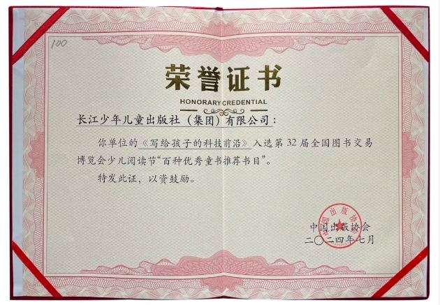 本屆少兒閱讀節以“書香浸潤童心,科技成就未來”為主題,并于現場發布了“百種優秀童書推薦書目”,設立了“百種優秀童書沉浸式互動體驗”的展覽。其中,由長江少年兒童出版社出版的《寫給孩子的科技前沿》入選。