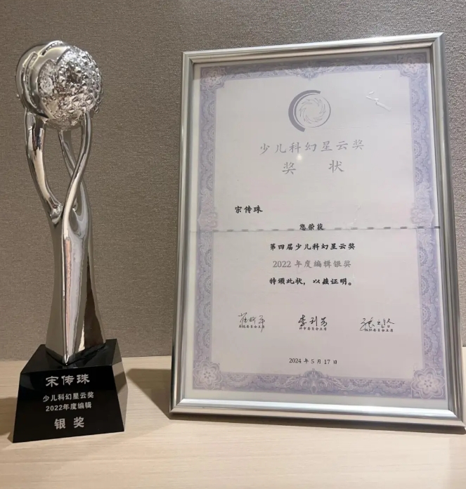 另外,在2024少兒科幻大會暨第四、第五屆少兒科幻星云獎頒獎典禮上,科普分社編輯宋傳珠榮獲少兒科幻星云獎2022年度編輯銀獎。