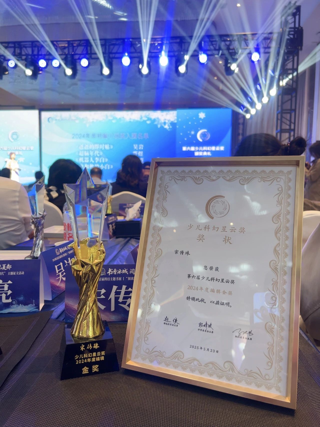 在此次大會上,長江少年兒童出版社編輯宋傳珠榮獲第六屆少兒科幻星云獎2024年度編輯金獎。