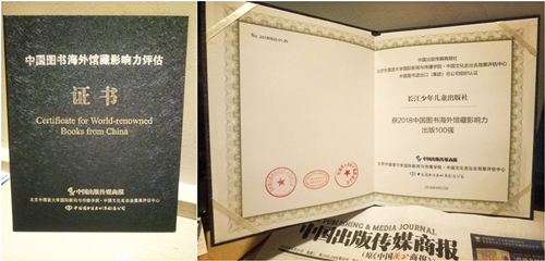 8月22日下午,在第25屆北京國際圖書博覽會上,由中國出版?zhèn)髅缴虉笊纭⒈本┩鈬Z大學中國文化走出去效果評估中心、國際新聞與傳播學院、中國圖書進出口(集團)總公司共同舉辦了“ 2018中國圖書海外館藏影響力報告發(fā)布禮”,在本次發(fā)布會上,長江少年兒童出版社傳來喜訊:在“年度進入世界圖書館系統(tǒng)品種數(shù)”一項重要統(tǒng)計中,我社共計有183個品種入選,位列全國出版社第25位,專業(yè)少兒社類第2名。